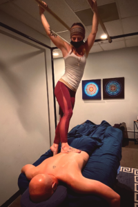 Ashiatsu, sometimes known as a barefoot massage, is a deep compression massage modality. Utilizing the feet while suspended from a bar, ashiatsu therapists deliver deep pressure, gliding strokes, and assisted stretching while working with gravity.